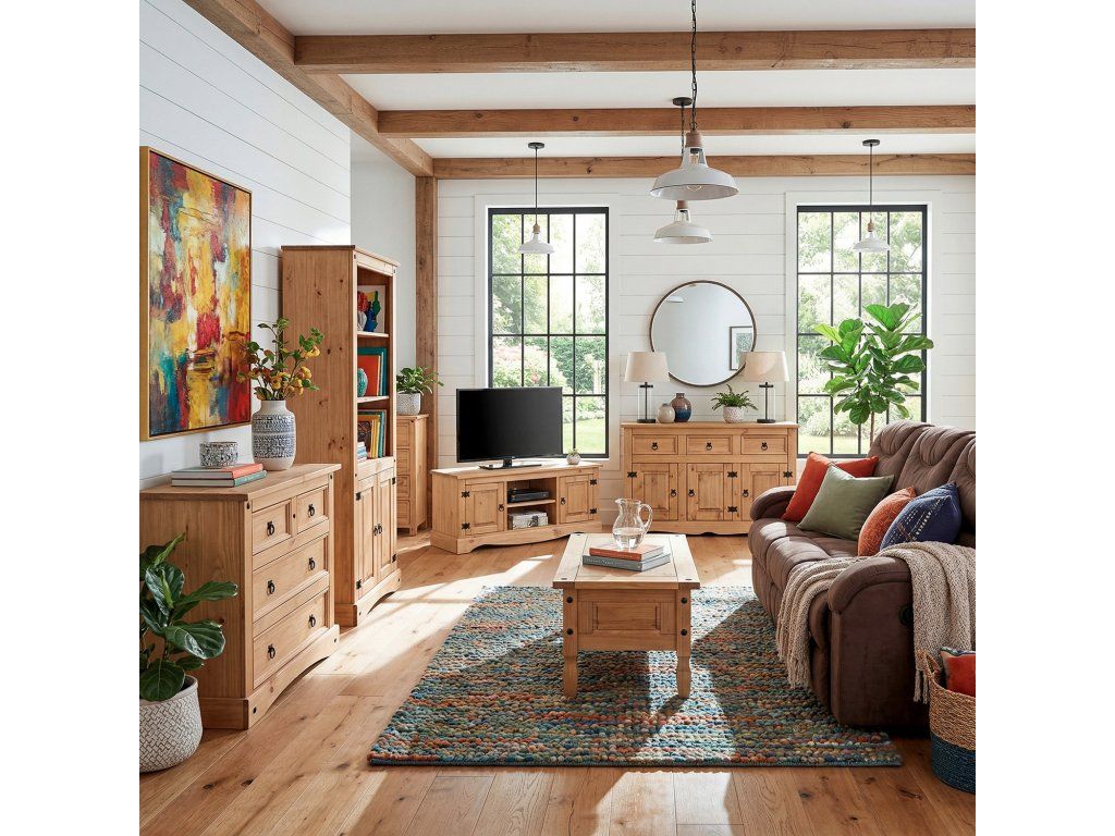 Vyrobený z masivní borovice s voskovaným povrchem v medovém odstínu, stolek nabízí odolnost a přírodní vzhled, který se hodí do různých stylů interiéru.