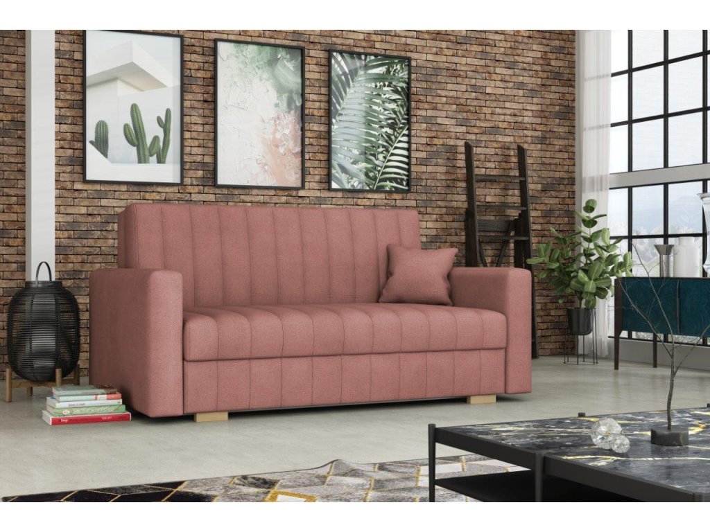 Využijte praktický úložný prostor pod sedákem pro uložení dek, polštářů nebo dalších doplňků. Pohovka je vybavena kvalitní látkou a v ceně je jeden dekorační polštář.