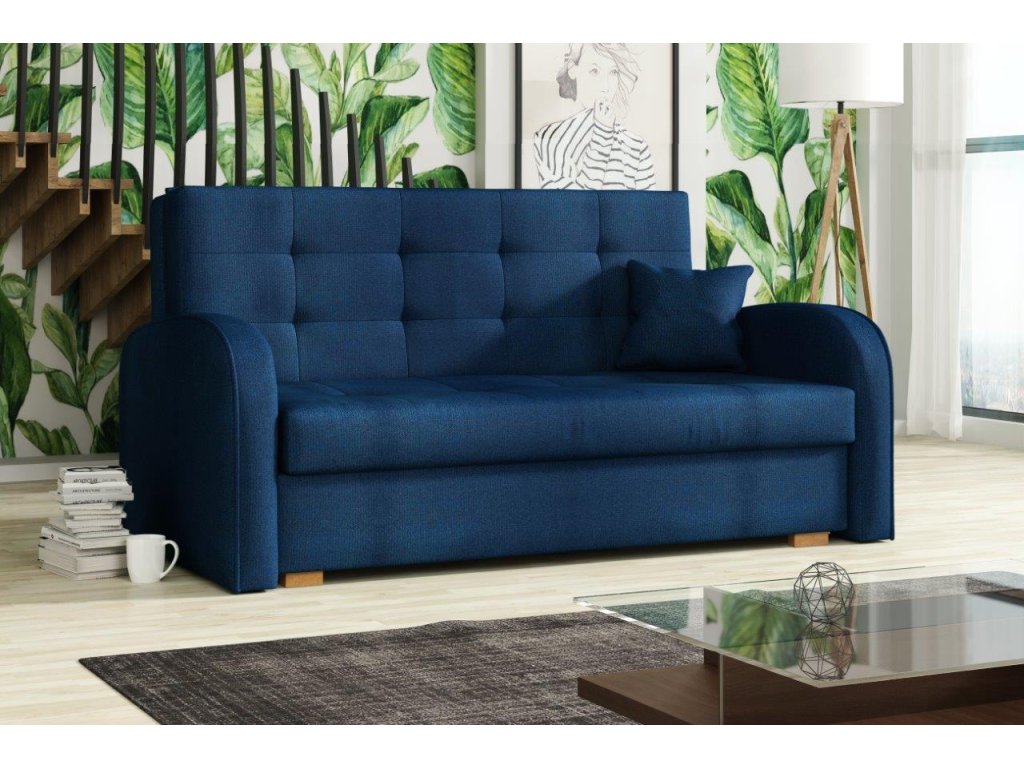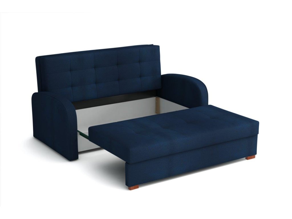 Pohovka Vivian Gold III modrá od značky FALCO nabízí jednoduché rozložení na lůžko pro příležitostné přespání návštěv. Díky kompaktním rozměrům se hodí i do menších prostor, jako jsou obývací, dětské nebo studentské pokoje.