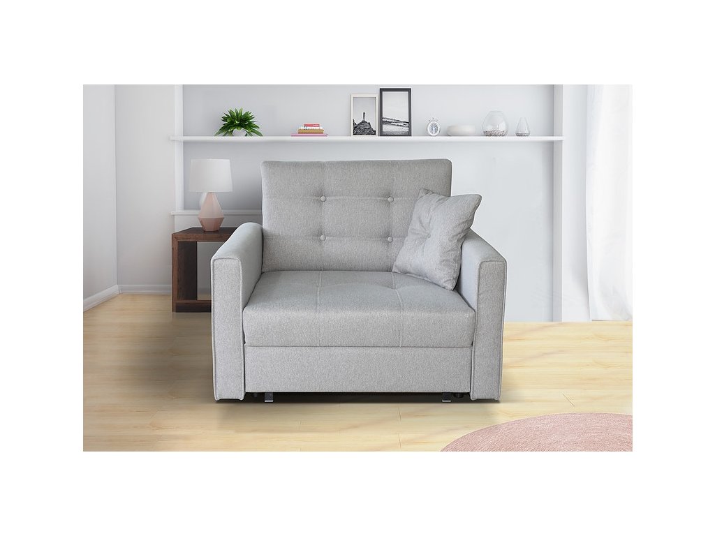 Potah v neutrální šedé barvě se snadno kombinuje s různými interiéry a je příjemný na dotek. Konstrukce křesla je pevná a stabilní, vhodná pro každodenní sezení i občasné spaní.