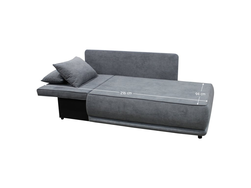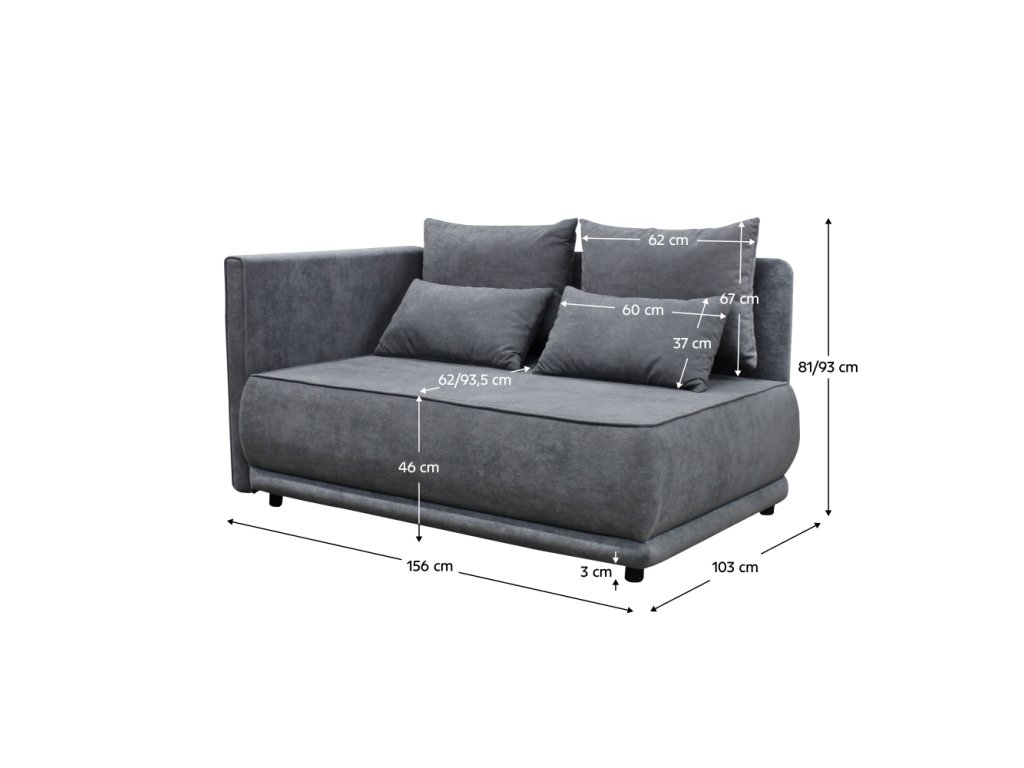 Pohovka má šířku 157 cm, hloubku 100 cm a výšku 85 cm. Plocha na spaní je 90x216 cm.