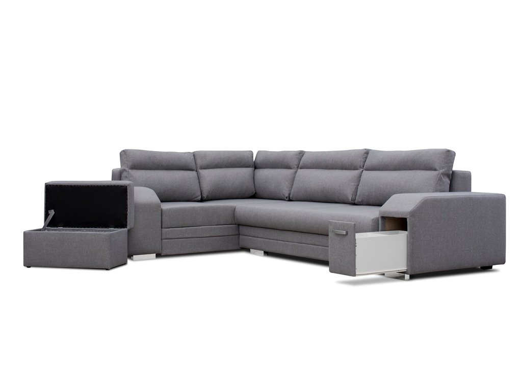 Součástí jsou úložné prostory v područi, taburetu a v konstrukci sedací soupravy, vhodné například pro uložení lůžkovin.