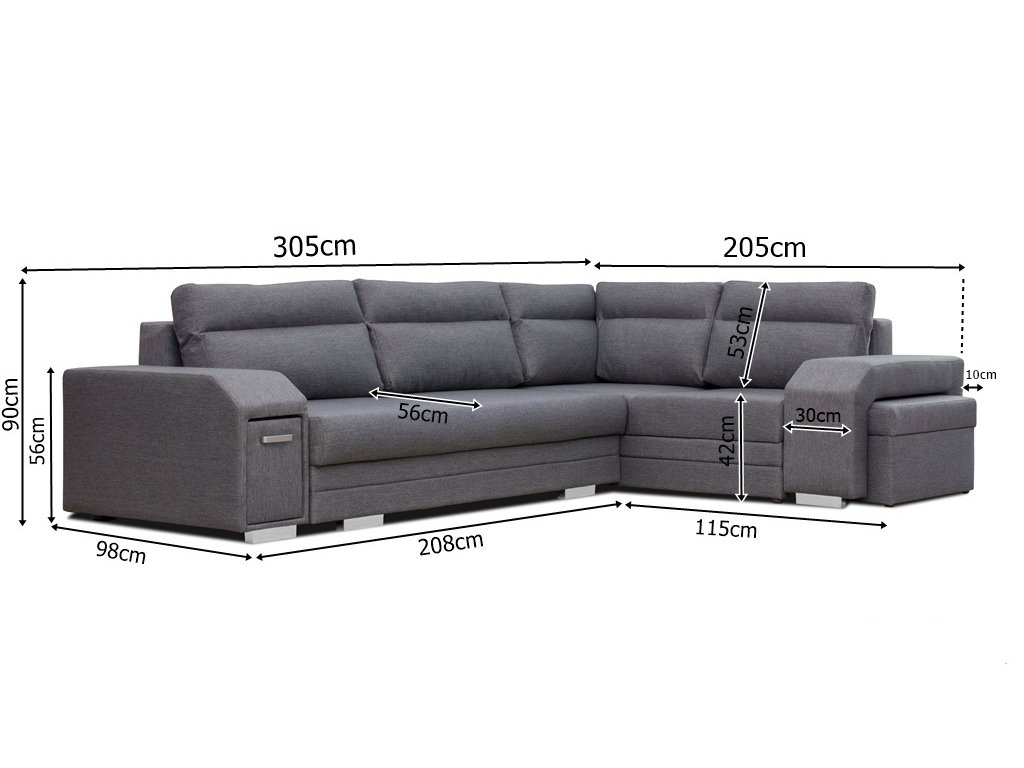 Součástí jsou úložné prostory v područi, taburetu a pod sedáky, které lze využít například na lůžkoviny nebo jiné předměty.