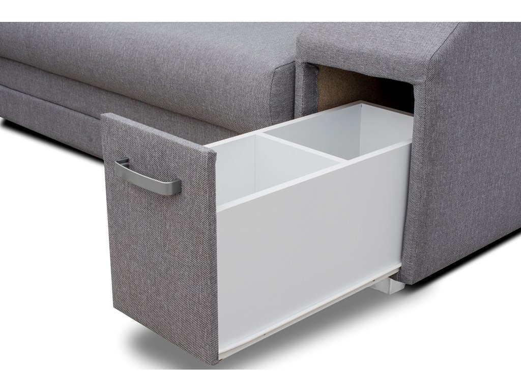 Souprava obsahuje několik úložných prostorů – v područi, taburetu i pod sedáky. Využijete je pro uložení lůžkovin nebo dalších potřebných věcí, čímž ušetříte místo v bytě.