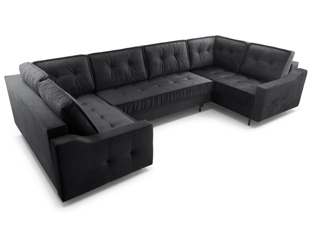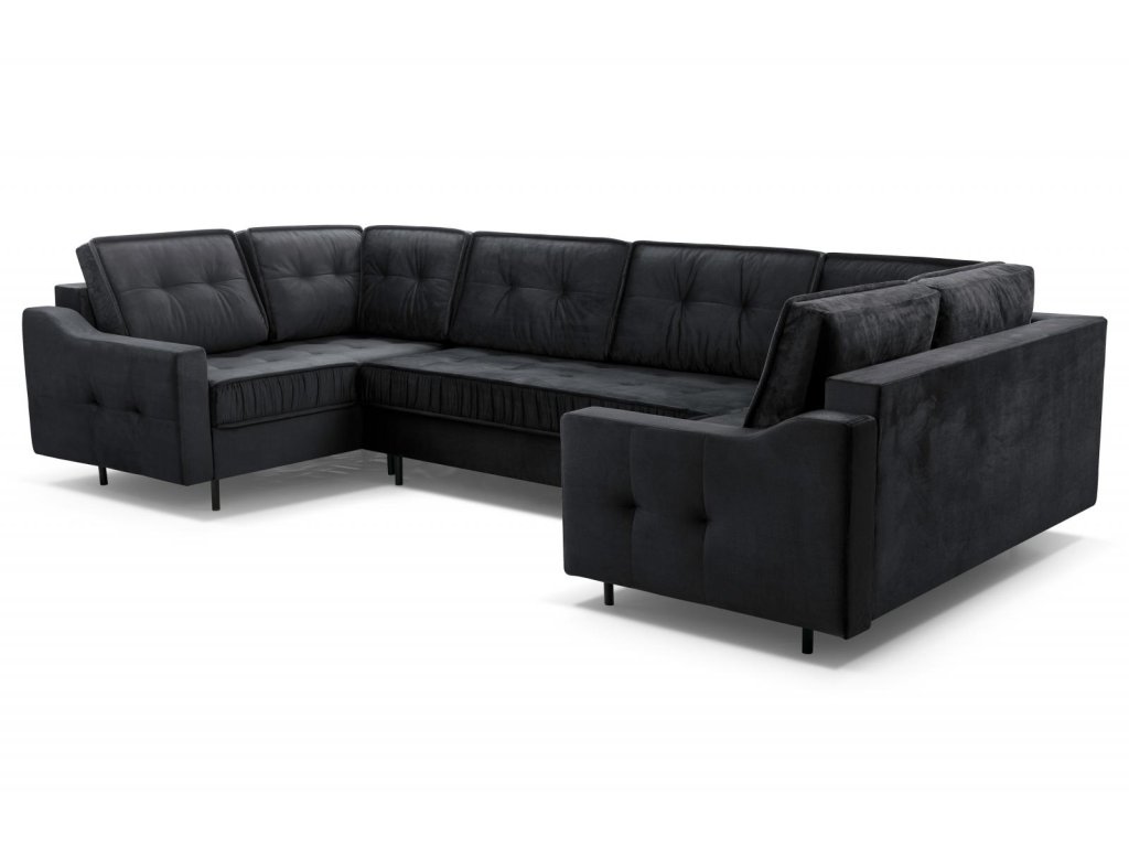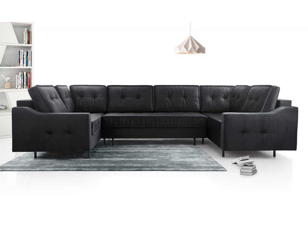 Sedací souprava Amalia U černá od značky FALCO nabízí pohodlné sezení i možnost rychlého rozložení na lůžko pro příležitostné přespání návštěv.