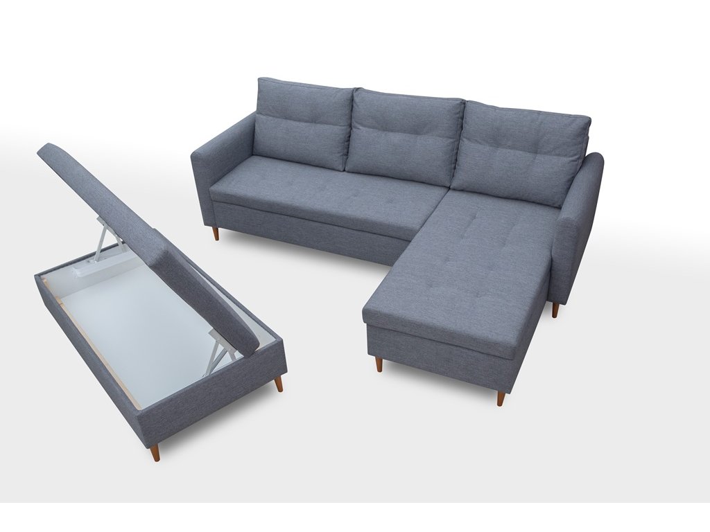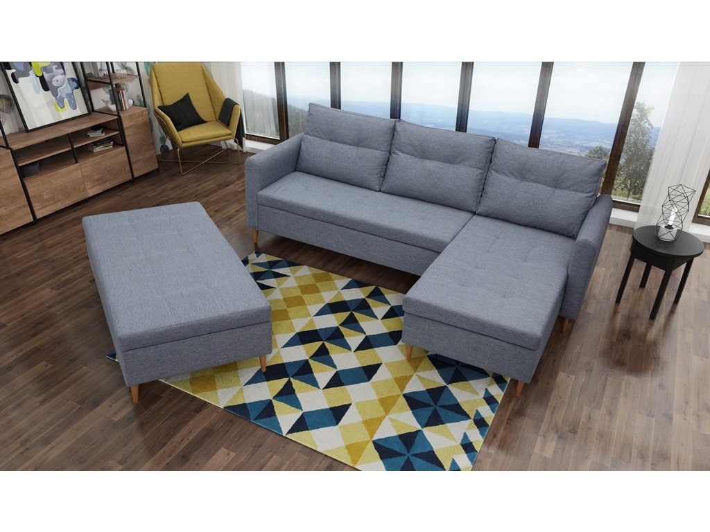 Součástí soupravy je velký taburet s úložným prostorem, který lze využít jako další místo k sezení nebo přistavit k sedací soupravě pro občasné přespání návštěvy.