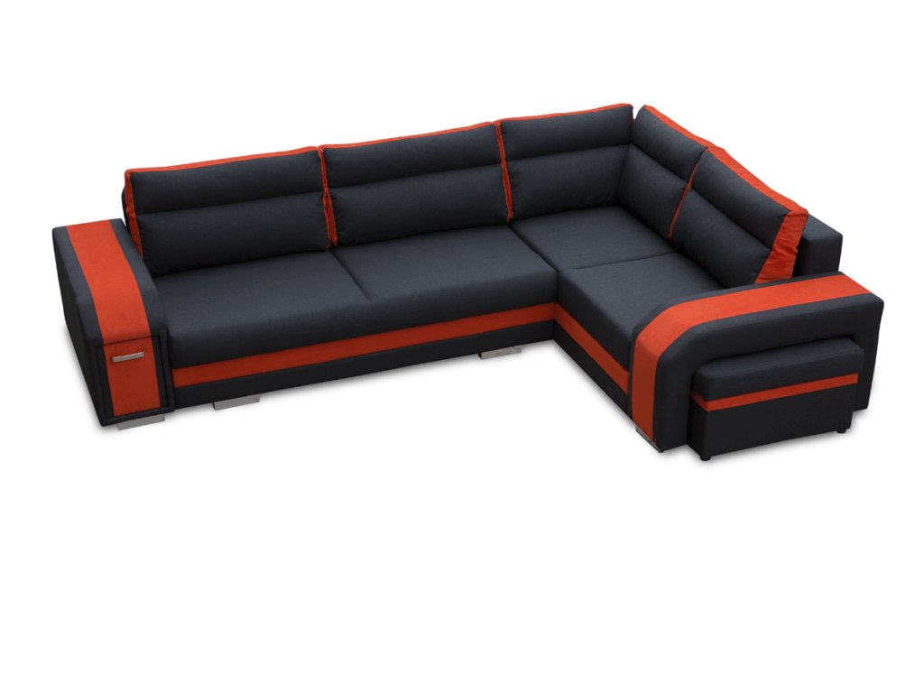 Souprava je dostupná v levém i pravém provedení, případně ve tvaru U, s kvalitní potahovou látkou a elegantním lemováním v několika barevných variantách.