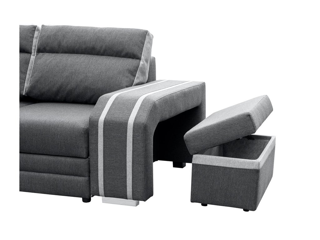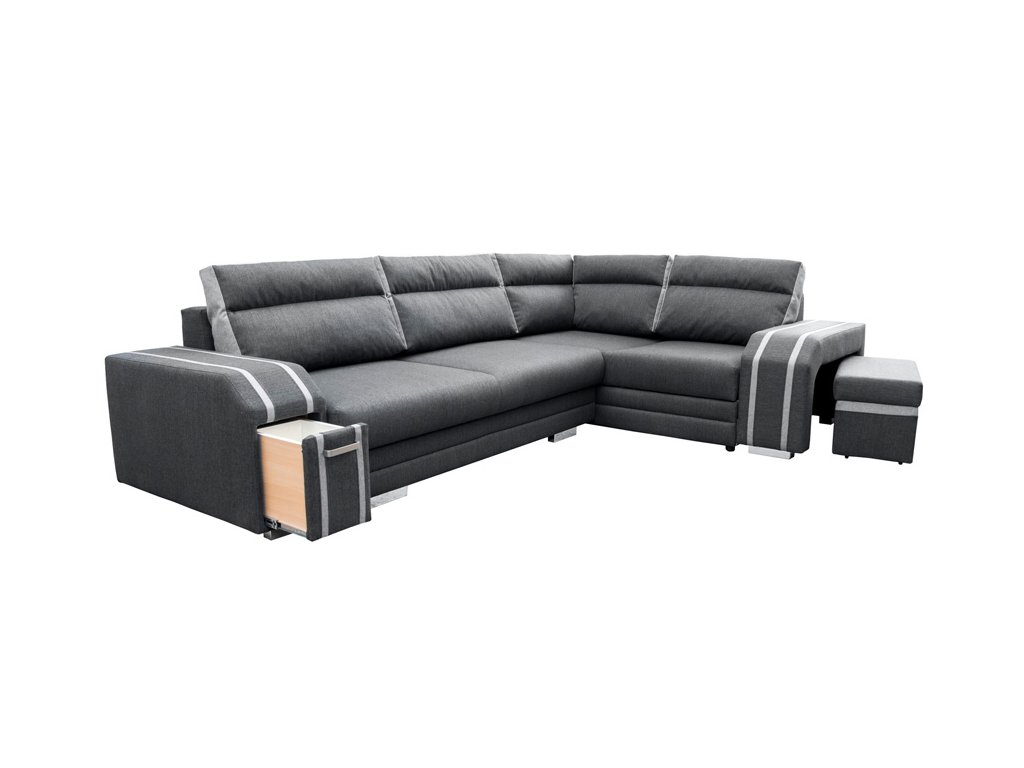 Souprava obsahuje dva úložné prostory – jeden v taburetu a druhý v područi, kde je navíc ukrytý praktický bar. Všechny tyto prvky zvyšují funkčnost a usnadňují organizaci prostoru v obývacím pokoji.
