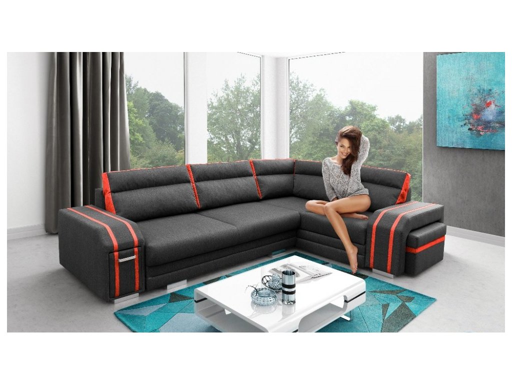 Model Avanti P je dostupný v černé s oranžovými detaily, což přináší výrazný a stylový prvek do interiéru. Sedací souprava se hodí do moderních obývacích pokojů, kde vynikne její elegantní kombinace barev.