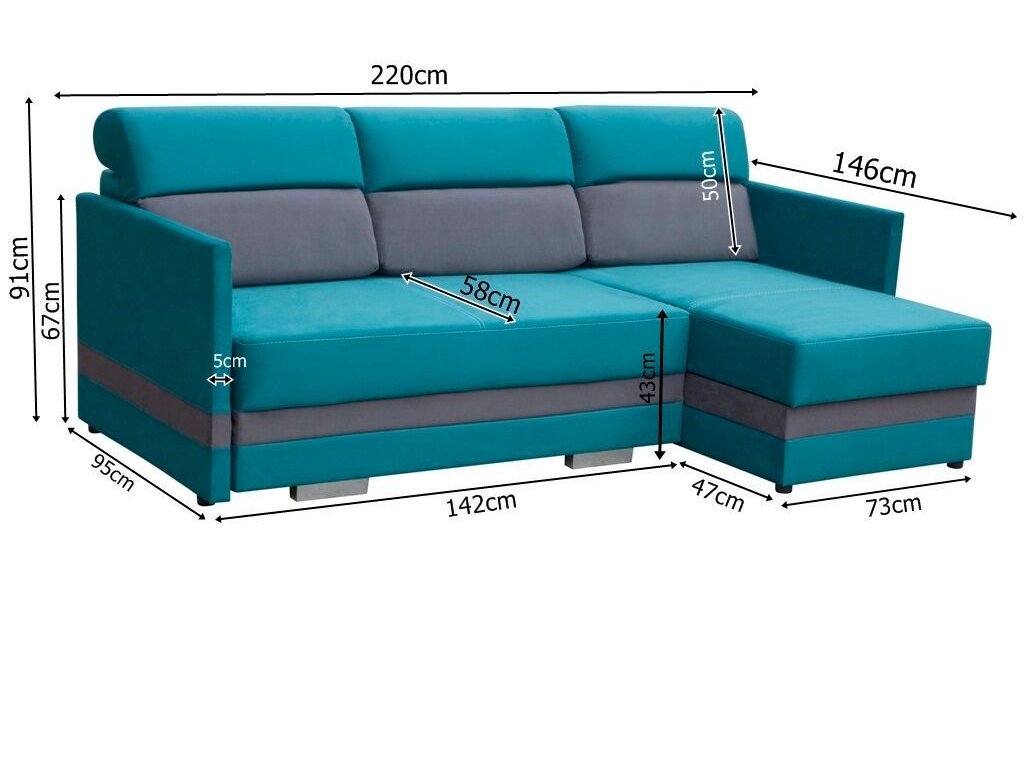 Rozměry sedací soupravy Berry L jsou přizpůsobeny tak, aby se vešla i do menších obývacích pokojů, přičemž stále nabízí dostatek místa pro sezení i spaní.