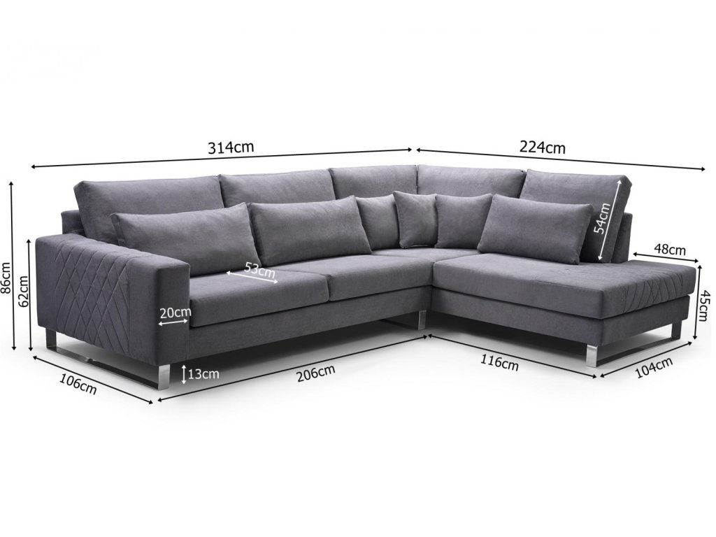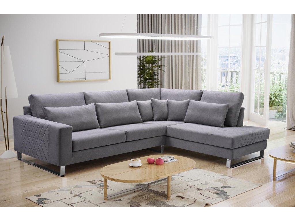 Souprava je dostupná v pravém i levém provedení a obsahuje všechny polštáře zobrazené na fotografii. Ostatní dekorace nejsou součástí.