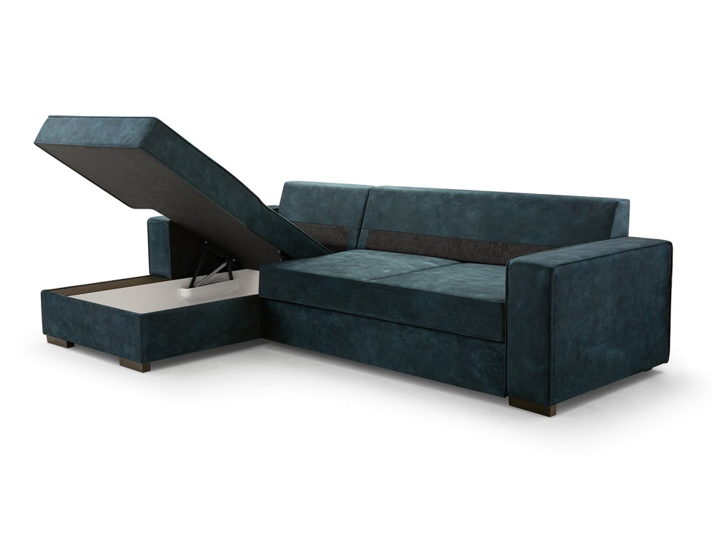 V sedací soupravě je zabudovaný úložný prostor, který poslouží k uložení lůžkovin nebo dalších doplňků, čímž pomáhá udržet pořádek v místnosti.