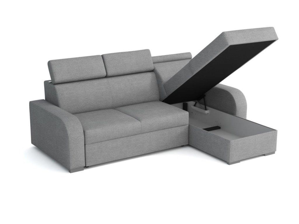 V sedací soupravě je integrovaný úložný prostor vhodný pro uložení lůžkovin nebo dalších předmětů, což šetří místo v interiéru.