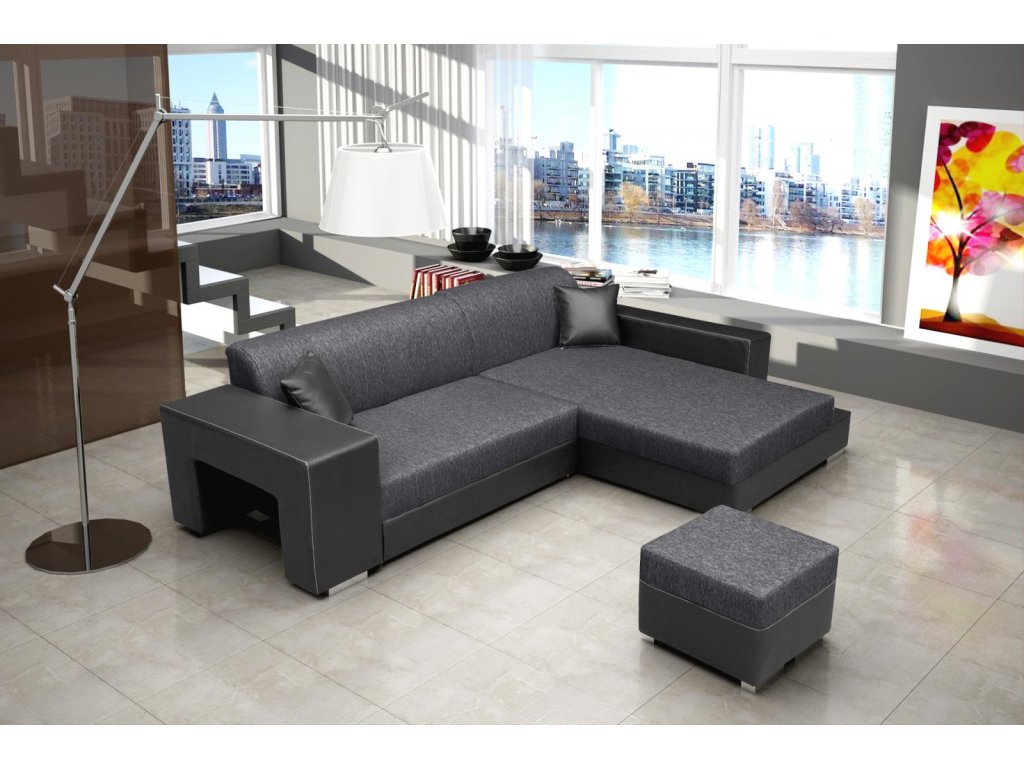 Černá a šedá kombinace sedací soupravy Oskar P se hodí do různých interiérů a doplní váš obývací pokoj stylově a prakticky.
