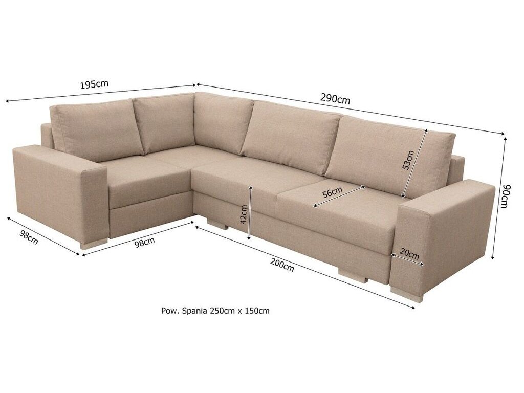 Po rozložení vznikne lůžko o ploše vhodné pro příležitostné spaní, jeho rozměry jsou přibližně 150 x 250 cm.
