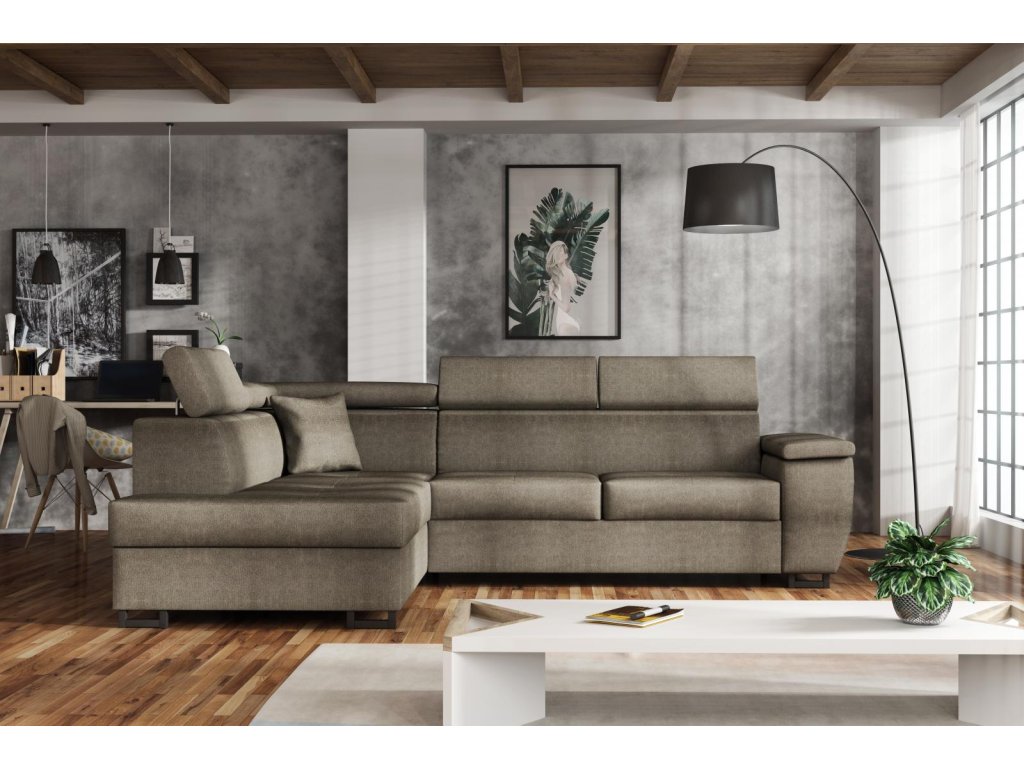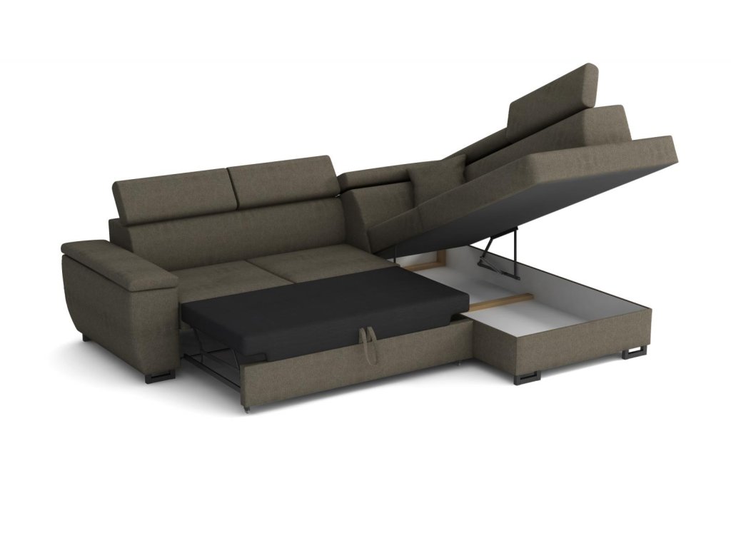 Souprava je k dispozici v levém i pravém provedení a v několika barevných variantách, včetně hnědé látky Bloom 04.