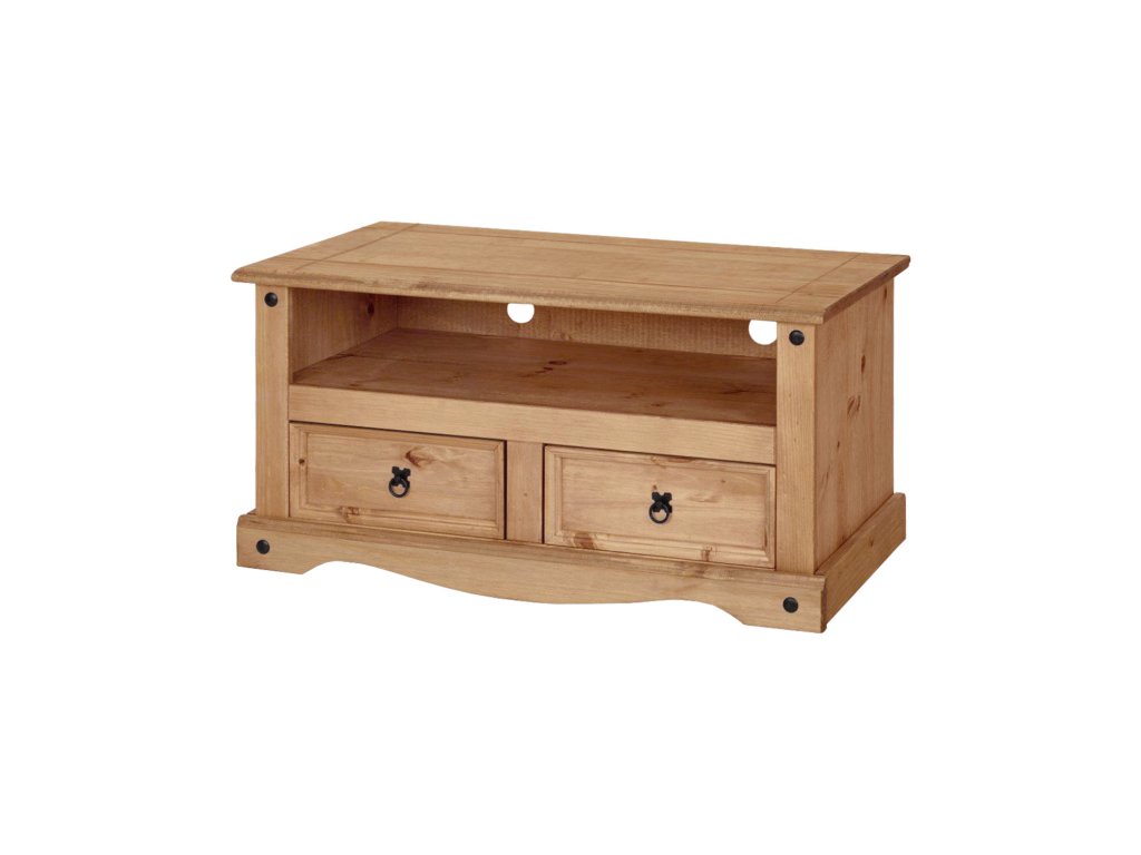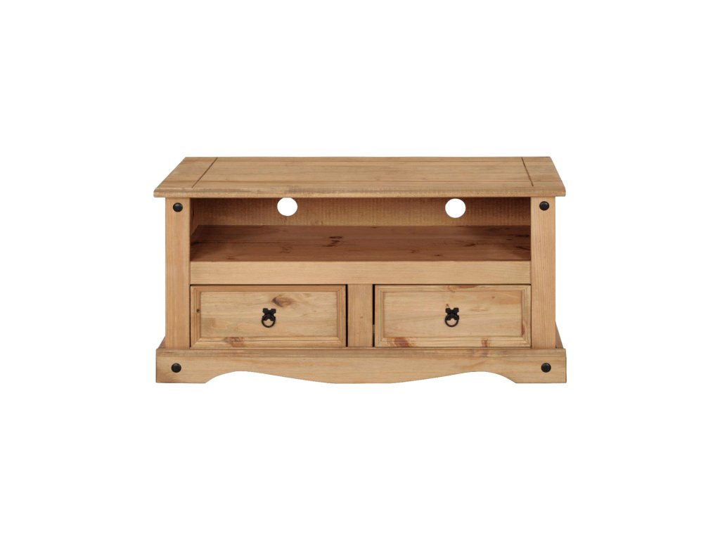 TV stolek CORONA 3 vosk je vyroben z masivní borovice s voskovaným medovým povrchem, který zvýrazňuje přirozenou strukturu dřeva. Nabízí praktické úložné prostory v podobě dvou zásuvek a otevřené police pro snadný přístup k elektronice.