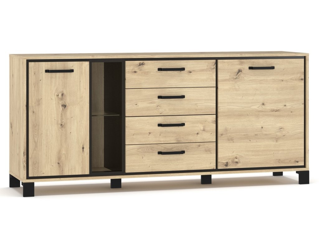 Komoda dvoudveřová se čtyřmi zásuvkami v moderním provedení dekoru přírodního dřeva. Nábytek je vyroben z kvalitní LTD desky v barevné kombinaci dub artisan/wenge tmavá. Dodáváme v demontovaném stavu.Doplňkové parametry