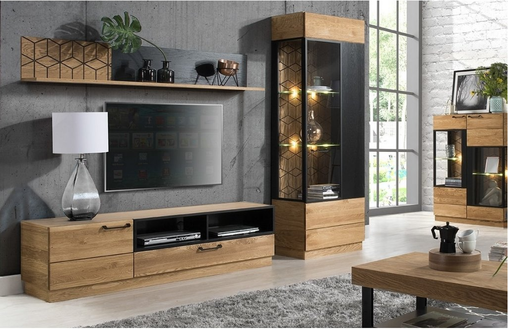 Obývací sestava MOSAIC SET1 (10+11+25+35) dub medový/černá