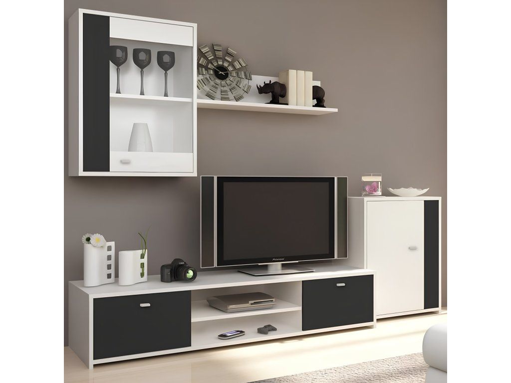 Obývací pokoj GENTA v barevném provedení bílá /černá. Materiál laminovaná DTD a ABS hrany.Rozměry celé obývací stěny (ŠxHxV): 210x42x180 cm