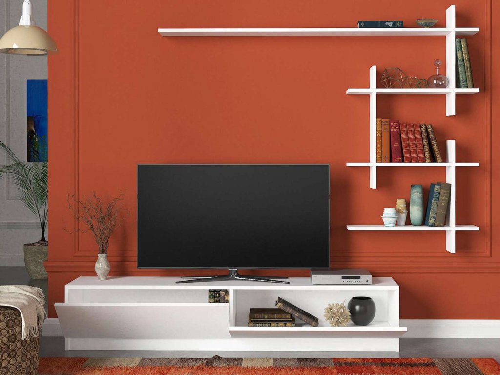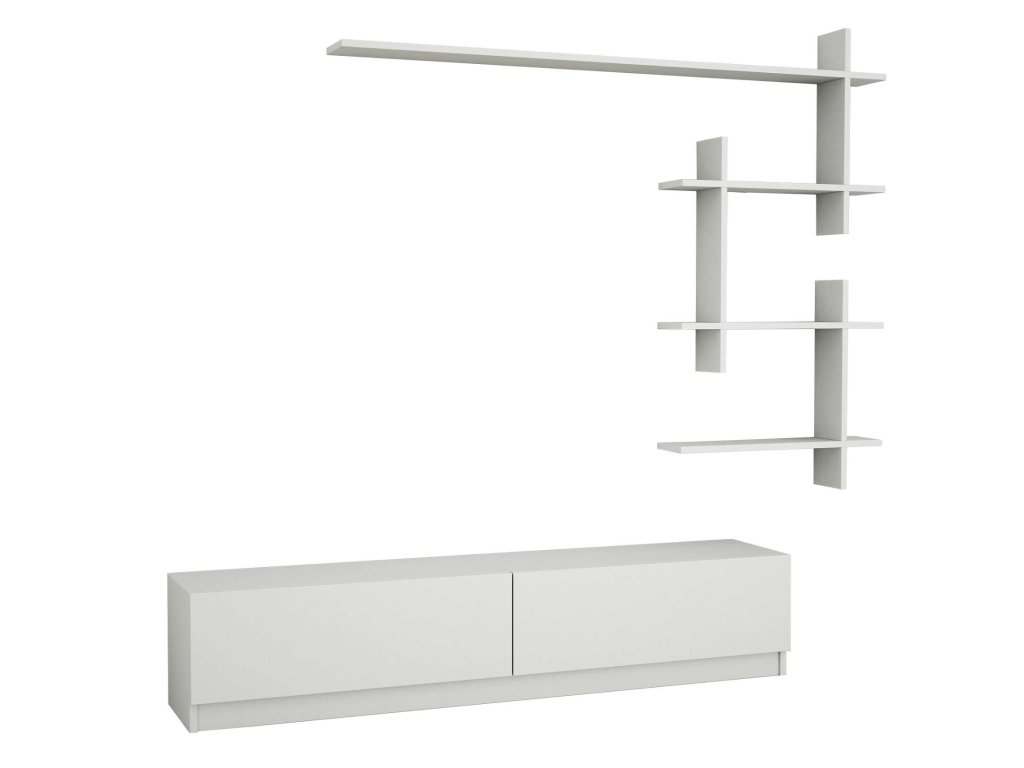 Vyrobena z kvalitního LTD s tloušťkou 18 mm, sestava obsahuje TV stolek a nástěnnou polici, které poskytují dostatek úložného prostoru a jsou snadno instalovatelné.