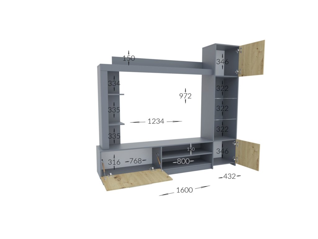 Obývací stěna se skládá z těchto částí: