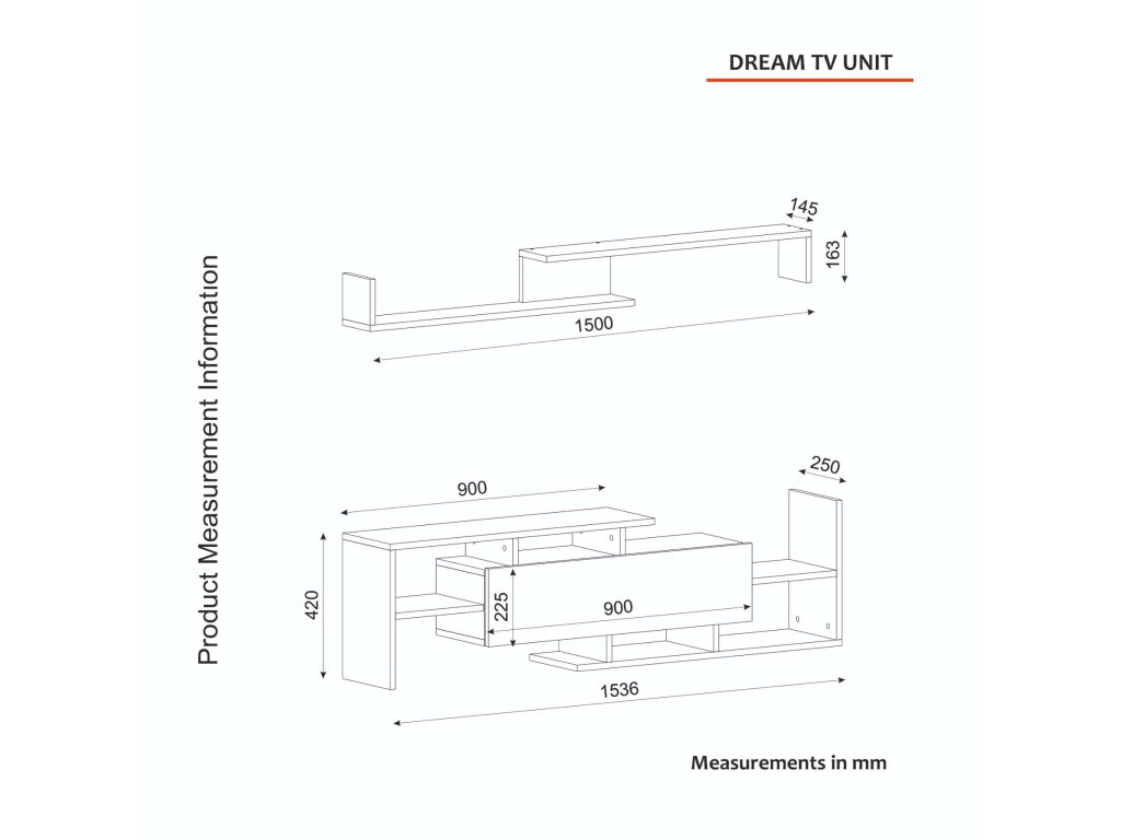 - Rozměry: TV stolek (153.6 x 25 x 42 cm) a nástěnná police (150 x 25 x 42 cm), které nabízejí praktické a esteticky příjemné řešení pro vaši domácí zábavu.