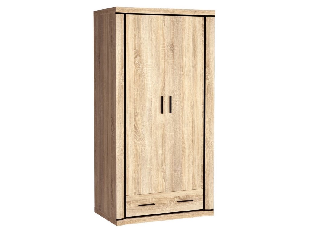 Nábytek je vyroben z odolného LTD lamina v barvě dub sonoma s MDF lištami a skleněnými prvky. Hrany jsou chráněny ABS páskou, což zajišťuje dlouhou životnost a snadnou údržbu.