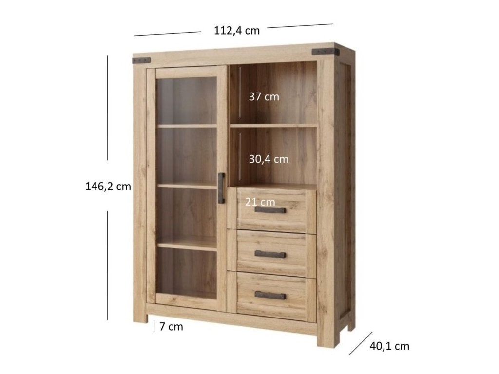- Široká vitrína (ŠxHxV): 112,4 x 40,1 x 146,2 cm