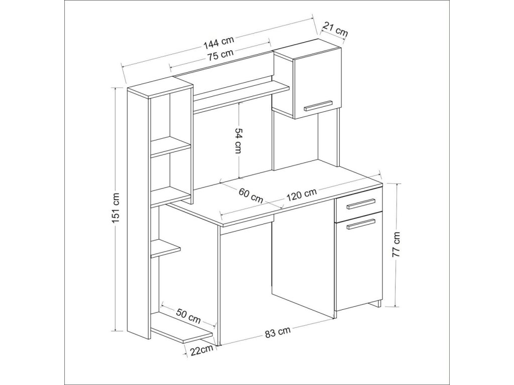 Ideální do dětského pokoje nebo kanceláře. Rozměry 151 x 144 x 60 cm poskytují dostatek prostoru pro práci, studium i volný čas.