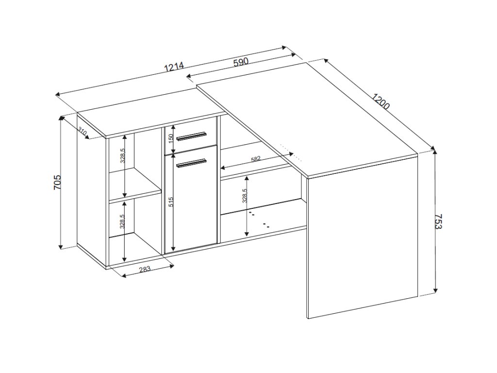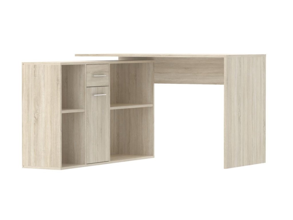 Moderní stůl vyniká svou praktičností a velkorysým pracovním a úložným prostorem. Je oblíbený zejména proto, že se dá postavit rovnou ale i do pravého či levého rohu místnosti.