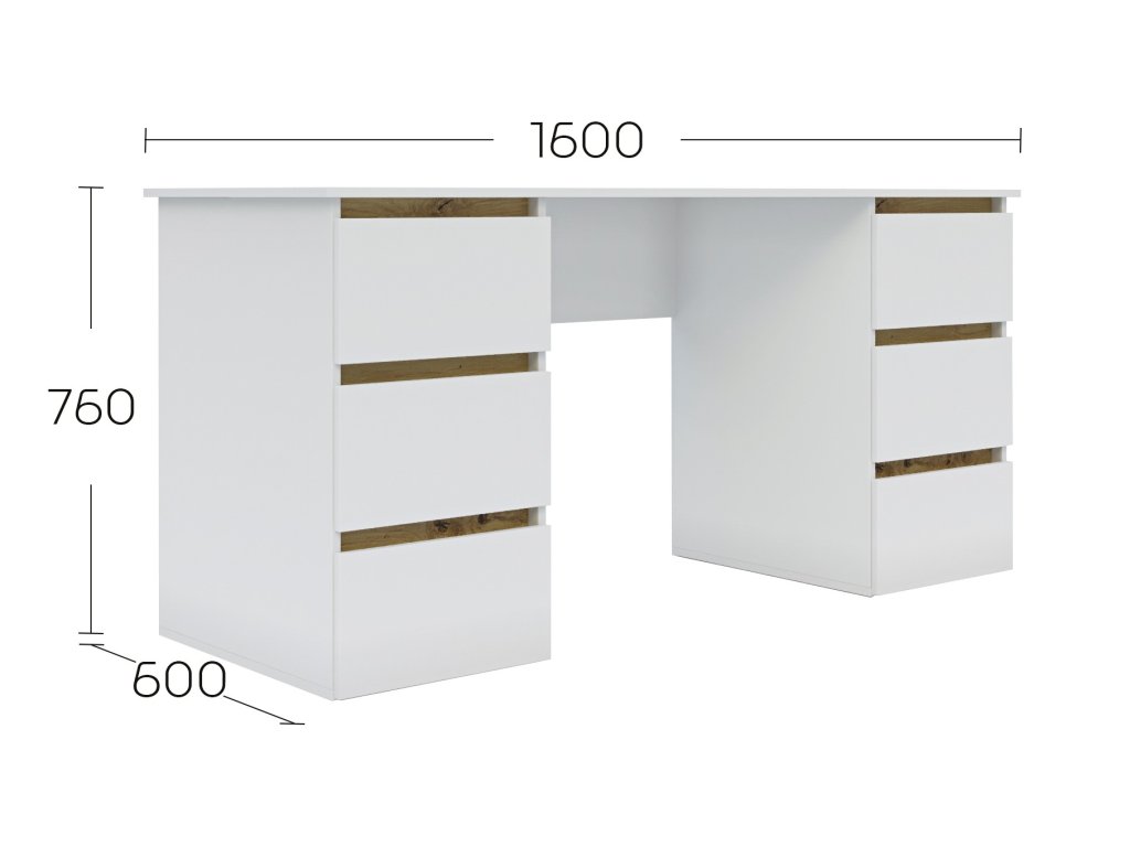 Široký psací stůl je funkční a moderní nábytek vhodný do každého interiéru. Psací stůl je vyroben z LTD laminovaného materiálu. Barva bílá matná dodává pracovnímu stolu příjemný a elegantní vzhled. psací stůl disponuje šesti praktickými šuplíky rozdělenými po obou stranách.