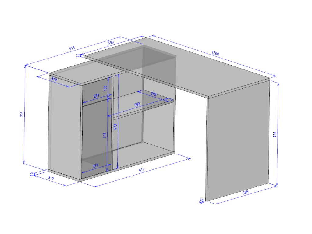 Moderní psací stůl se vyznačuje svou praktičností a nabídkou velkorysého pracovního místa a úložného prostoru. Jeho praktičnost spočívá zejména v tom, že se dá umístit i rovnou ke stěně a také do pravého nebo levého rohu místnosti.