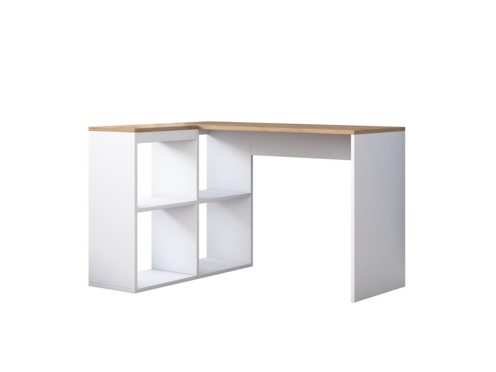 Moderní rohový pracovní stůl navržený pro efektivní práci i studium. Tento elegantní stůl je ideální pro dětský pokoj nebo kancelář či pracovnu, čímž přináší do každého interiéru stylový a čistý vzhled. Materiál je Melamin, VT laminát (18 mm). Barevné provedení je dub/bílá. Stůl nabízí 2 police pro praktické úložné místo. Kvalitní melaminový povrch zajišťuje snadnou údržbu a dlouhou životnost. Dodáváme v demontovaném stavu.
