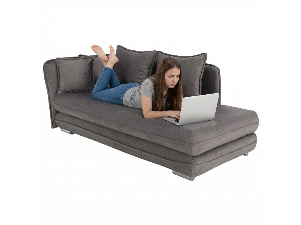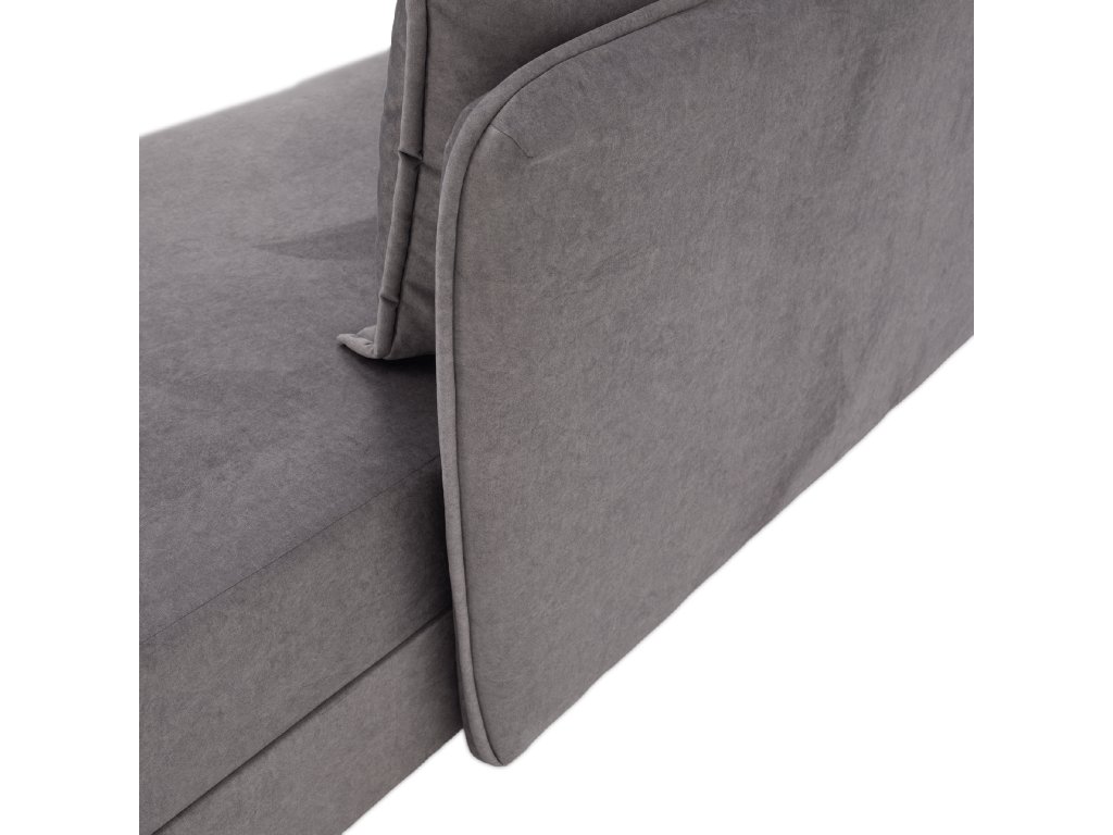 Dodávána v demontu, snadno sestavitelná. Součástí jsou polštáře, které zvýší komfort při sezení nebo spaní. Plastové nožičky s stříbrnou barvou dodávají moderní vzhled.