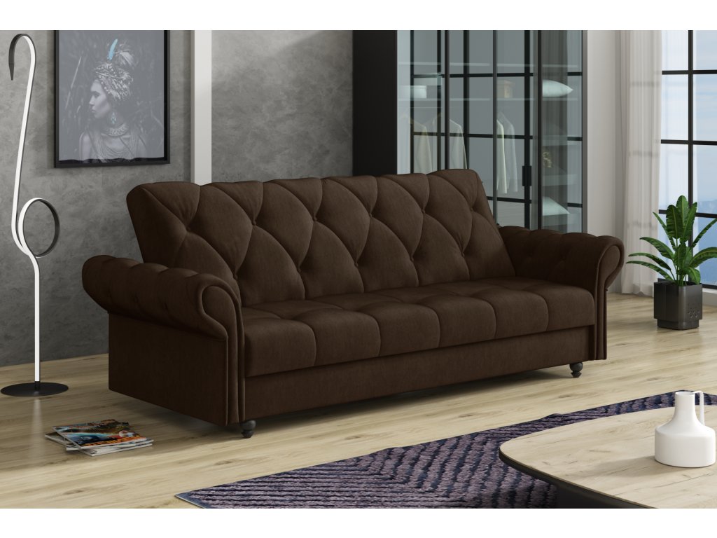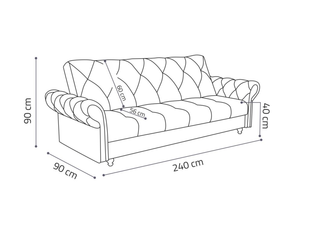 Pohovka má šířku 240 cm, hloubku 90 cm a výšku 90 cm. Po rozložení nabízí plochu 120x190 cm.
