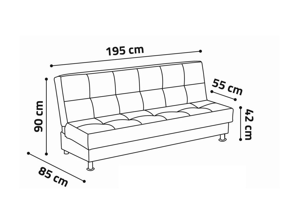 Po rozložení má pohovka plochu pro spaní o rozměrech 120 x 195 cm, což je vhodné pro jednu osobu.