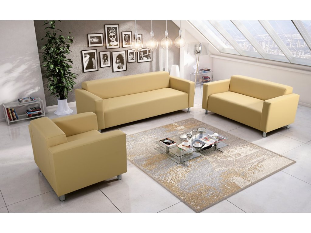 Sezení zajišťují vlnovcové pružiny a PUR pěna, které poskytují pohodlí a dostatečnou oporu. Výška sedáku je optimalizovaná pro běžné užívání.