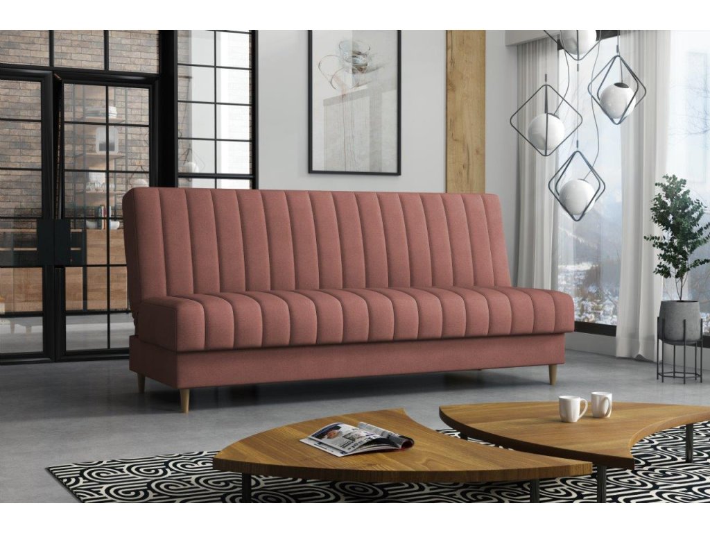 Pohovka Ejmy v sobě spojuje eleganci, funkčnost a příznivou cenu. Je vyrobená v jednoduchém nadčasovém designu, který se hodí do každého inferiéru. Umístit ji můžete nejen do obývacího pokoje, ale také např. do pracovny, nebo hostinského pokoje. Pohovka je rozkládací. Jednoduchým rozložením získáte lůžko k občasnému přespání Vaší návštěvy. Samozřejmostí je i praktický úložný prostor, který můžete využít třeba na lůžkoviny. Pohovku nabízíme v několika barevných provedeních. Vyobrazené doplňky a dekorace nejsou v ceně.