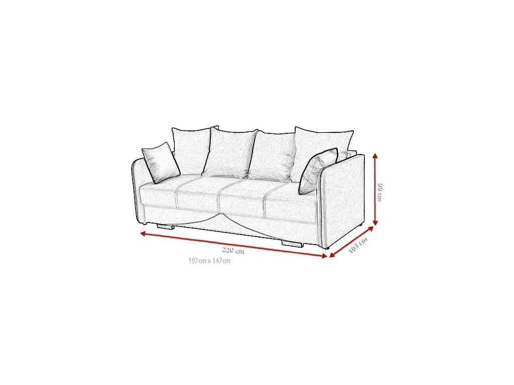 Po rozložení má pohovka plochu vhodnou pro spaní o rozměrech přibližně 147 x 197 cm.