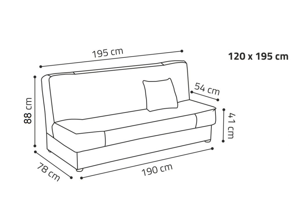 Po rozložení má pohovka plochu vhodnou pro spaní o rozměrech 120 x 195 cm, což je dostatečné pro jednu osobu.
