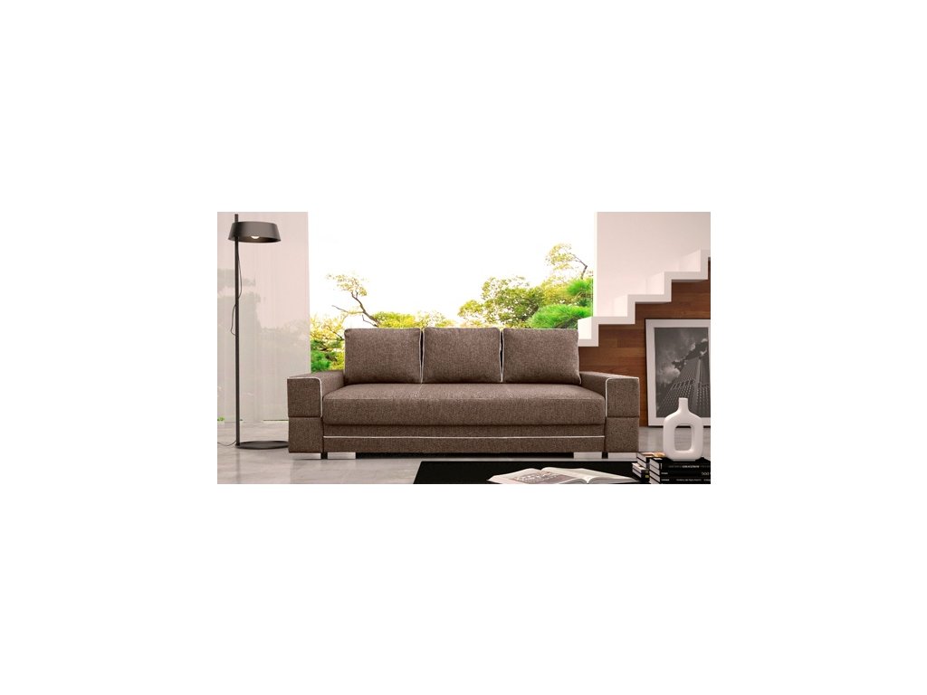 Pohovka Sabina je určena pro ty, kteří mají rádi komfort a originalitu. Kombinace pružin faliste a bonell s kvalitní PUR pěnou, zajišťují velmi pohodlné sezení. Pohovka je rozkládací a má také praktický úložný prostor. Jednoduchým rozkladem pomocí automatu vznikne lůžko vhodné k příležitostnému spaní. Pohovku nabízíme v kvalitní potahové látce s elegantním bílým lemováním, a to v několika barevných provedeních, které také naleznete v naší nabídce. V ceně pohovky jsou 3 velké opěrné polštáře. Ostatní vyobrazené dekorace nejsou v ceně.