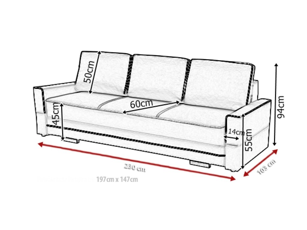 Po rozložení má pohovka plochu vhodnou pro spaní o rozměrech přibližně 147 x 197 cm.