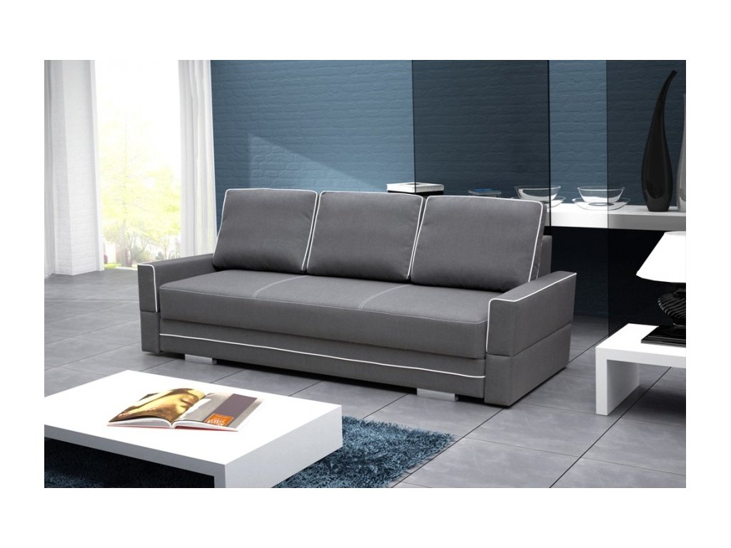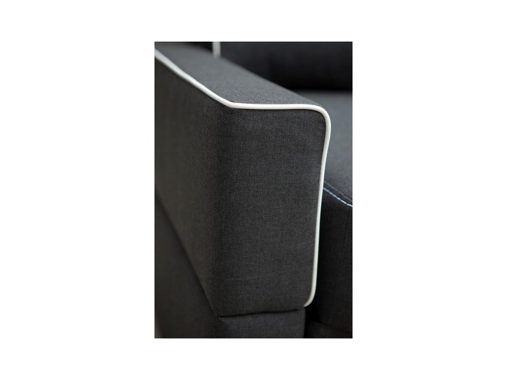 Kvalitní látka v tmavě šedé barvě s bílým lemováním dodává pohovce moderní a nadčasový vzhled, který snadno sladíte s různými styly interiéru.