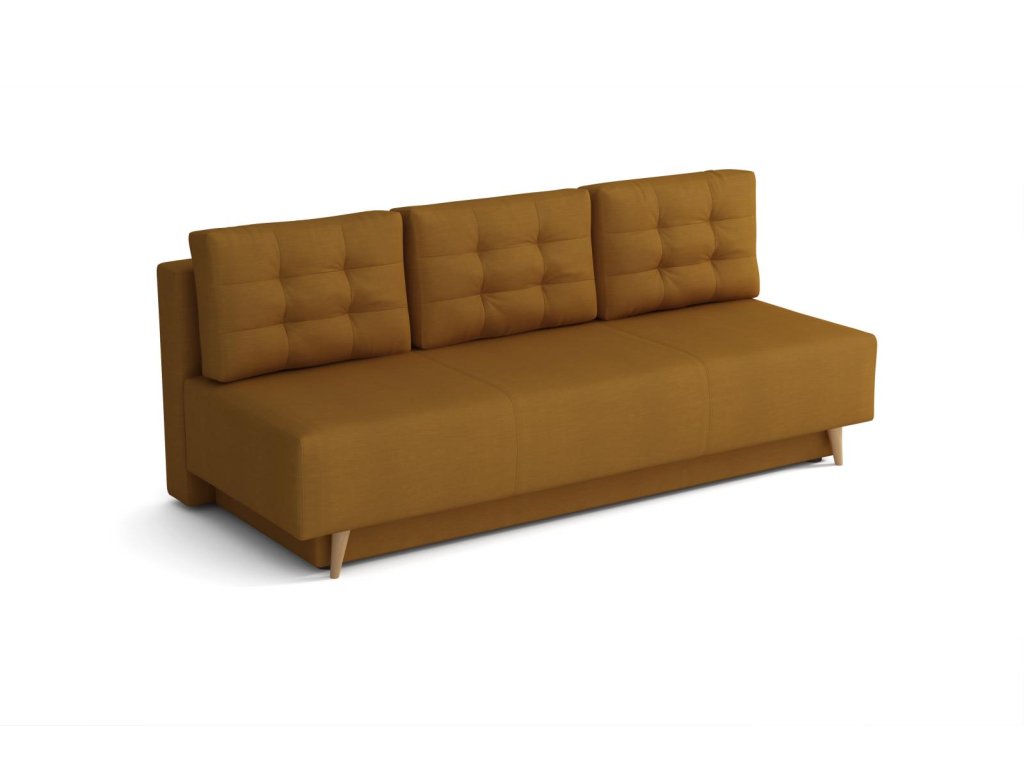 Pohovka Sebastian je elegantním kouskem sedacího nábytku s nádechem RETRO designu a výborně zapadne do každého interiéru. Retro design podtrhují zešikmené dřevěné nohy a látkové knoflíky na opěrných polštářích. Pohovka je rozkládací a samozřejmostí je i nepostradatelný úložný prostor. Jednoduchým rozložením pomocí automatu vznikne dostatečně prostorné lůžko občasnému přespání Vaší návštěvy. Výplň sedáku tvoří pružiny bonell a kvalitní PUR pěna. Pohovka je celočalouněná, takže ji můžete umístit i do prostoru. Výborně se hodí do obývacího pokoje, do pracovny či pokoje pro hosty. Pohovku nabízíme v několika trendy barvách. Vyobrazené dopňlky a dekorace nejsou v ceně.