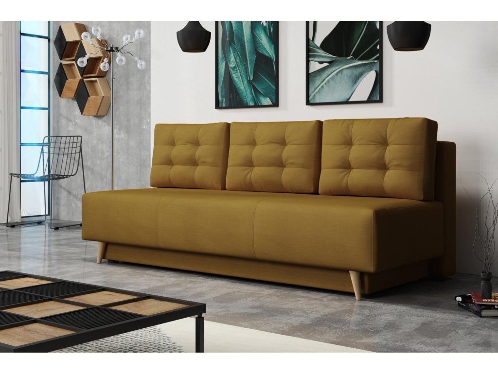 Pohovka Sebastian Velluto žlutá od značky FALCO nabízí jednoduché rozložení na lůžko pro občasné přespání. Díky rozkládacímu mechanismu snadno zvětšíte plochu pro odpočinek.