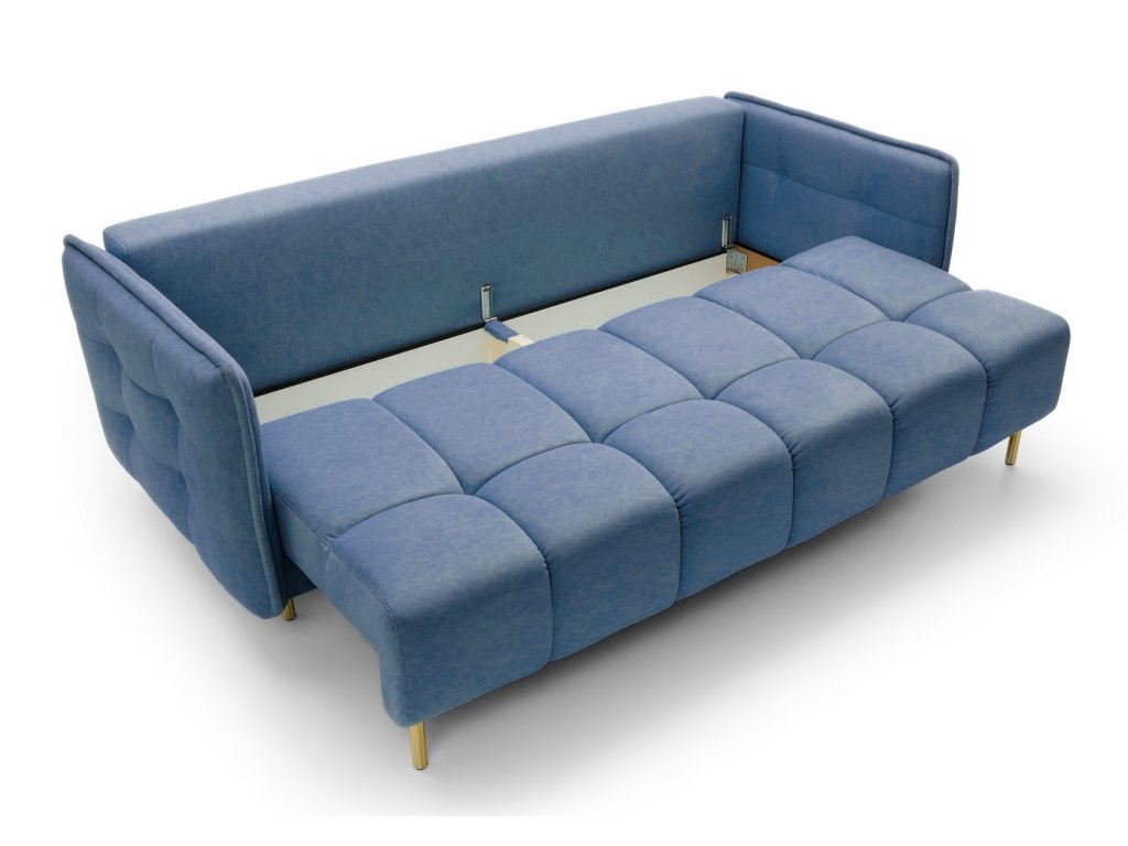 Stačí vysunout sedací část a sklopením zadní opěrné části pohovku složit zpět do původní podoby.