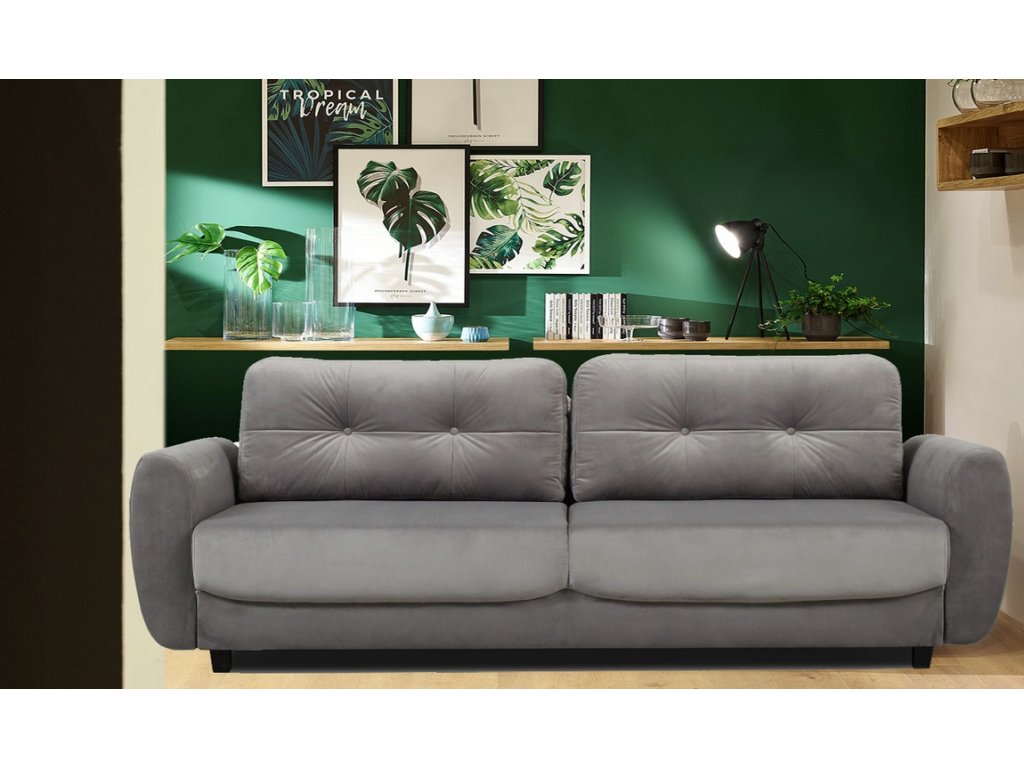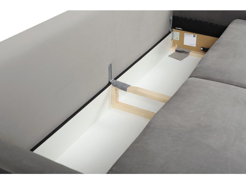 Pohovka obsahuje úložný prostor, kam lze uložit přikrývky nebo polštáře. Udržuje pořádek a šetří místo.