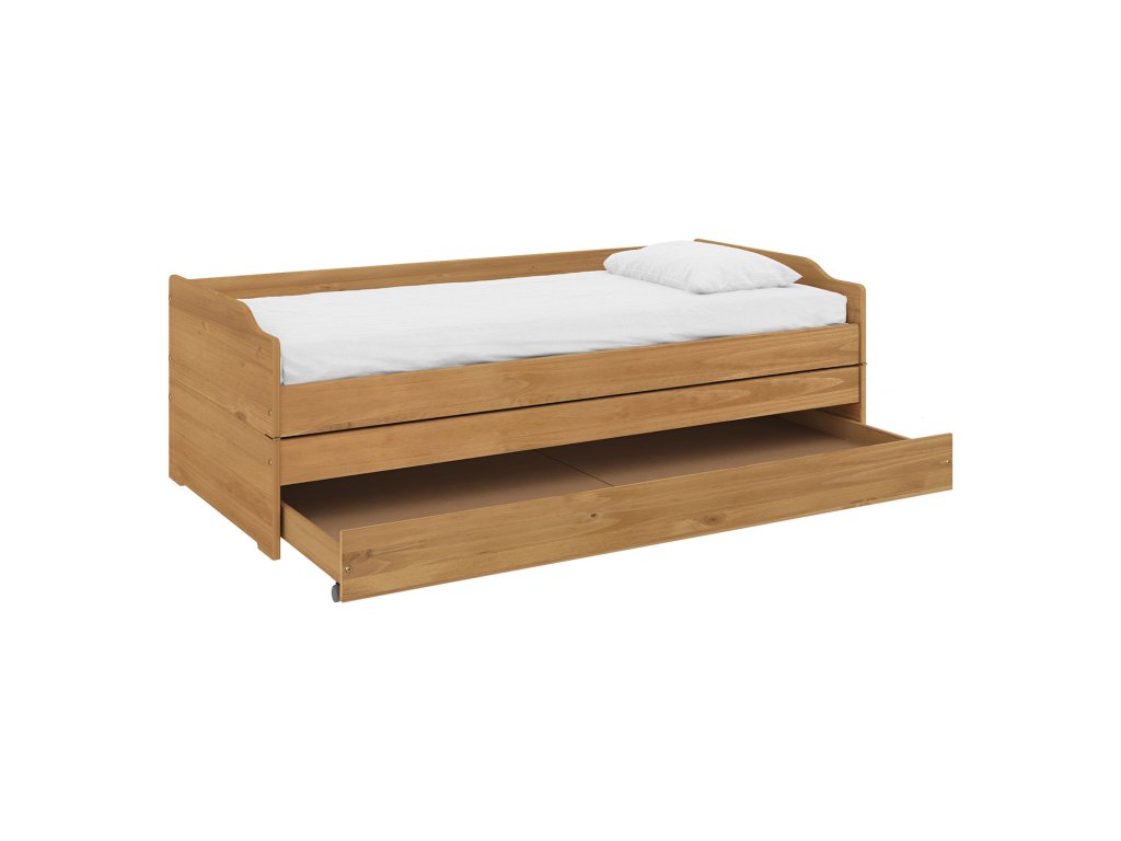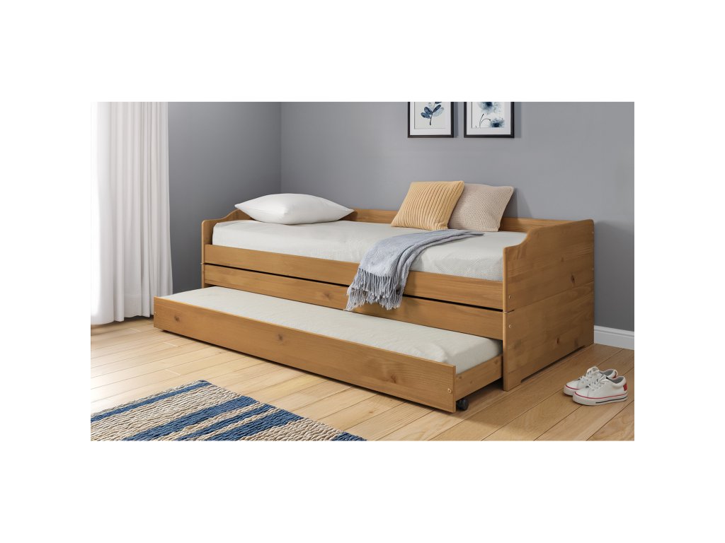 Vyrobena z masivní borovice s voskovaným povrchem, který je odolný a snadno se udržuje. Laťkové rošty jsou součástí balení, matrace doporučujeme do 90 × 200 cm.