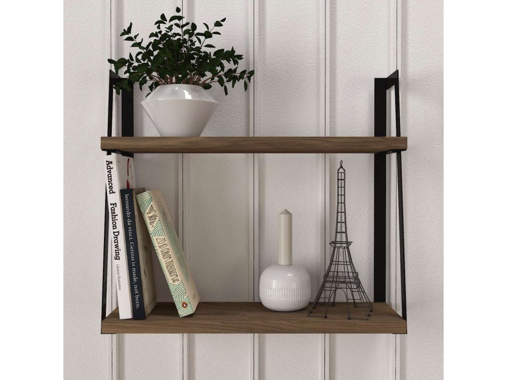 Vyrobena z LTD a kovu, police nabízí vysokou pevnost a odolnost. Elegantní obdélníkový tvar a ořechová barva dodají interiéru teplý a moderní vzhled.